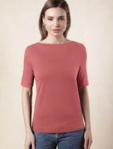 Детали: круглая горловина, спущенная линия плеча, рукава втачные короткие.