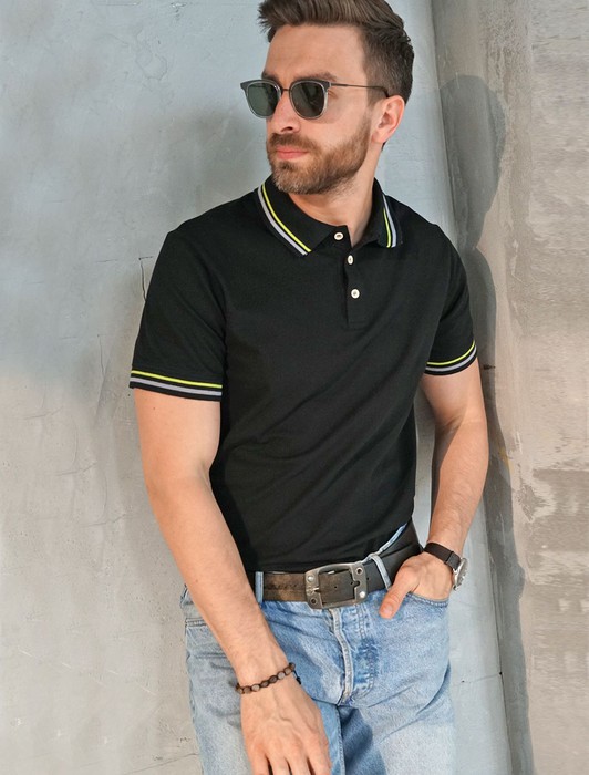 Состав: 92%Хлопок 8%ПУ Параметры модели на первом фото: Рост 190, бюст 111, талия 88, бедра 105Черное прямое поло выполнено из премиального хлопка пике с характерной фактурой, которая обеспечивает эффективную циркуляцию воздуха. Деликатный акцент в модели выполнен в виде плетения контрастных полос на воротнике. Наличие эластана в составе изделия способствует эластичности и меньшей сминаемости. Внизу металлический логотип бренда.