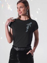 Vilatte Футболка из премиального хлопка с эластаном D49.989 черный_art_poster