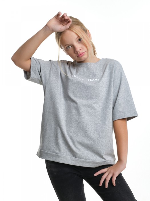Совместные покупки Магнитогорск Детская одежда Футболки, майки — Mini Maxi Футболка с принтом (128-146см) 22-7613-2(3) светло-серый меланж