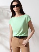 Футболка облегающая из хлопка в рубчик с вырезом лодочка с матовым покрытием мет