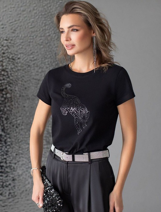Совместные покупки Магнитогорск Женская одежда Футболки — Футболка Vilatte D49.123 черный_леопард