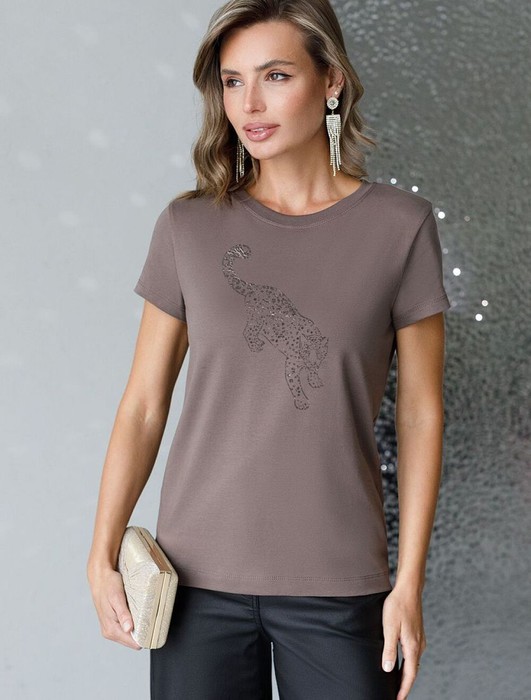 Совместные покупки Магнитогорск Женская одежда Футболки — Футболка Vilatte D49.123 кофе_леопард