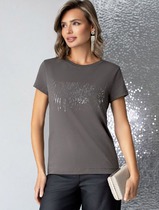 Совместные покупки Магнитогорск Женская одежда Футболки — Футболка Vilatte D49.125 черный_пайетки