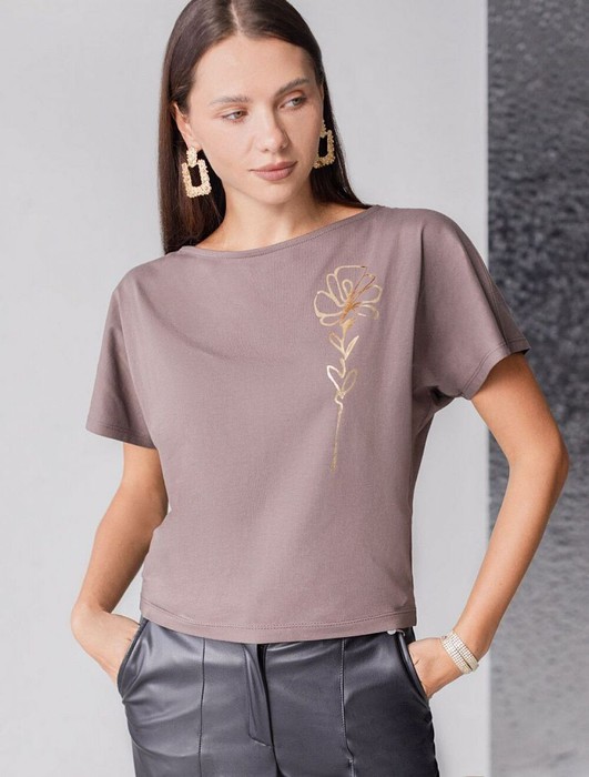 Совместные покупки Магнитогорск Женская одежда Футболки — Футболка Vilatte D49.133 кофейный_цветок