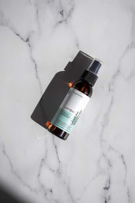 "Гидролат шалфея (цветочная вода) — продукт паровой дистилляции (выпаривания) шалфея. Собранный конденсат пара — это целебная жидкость, которая содержит водорастворимые полезные компоненты растения.