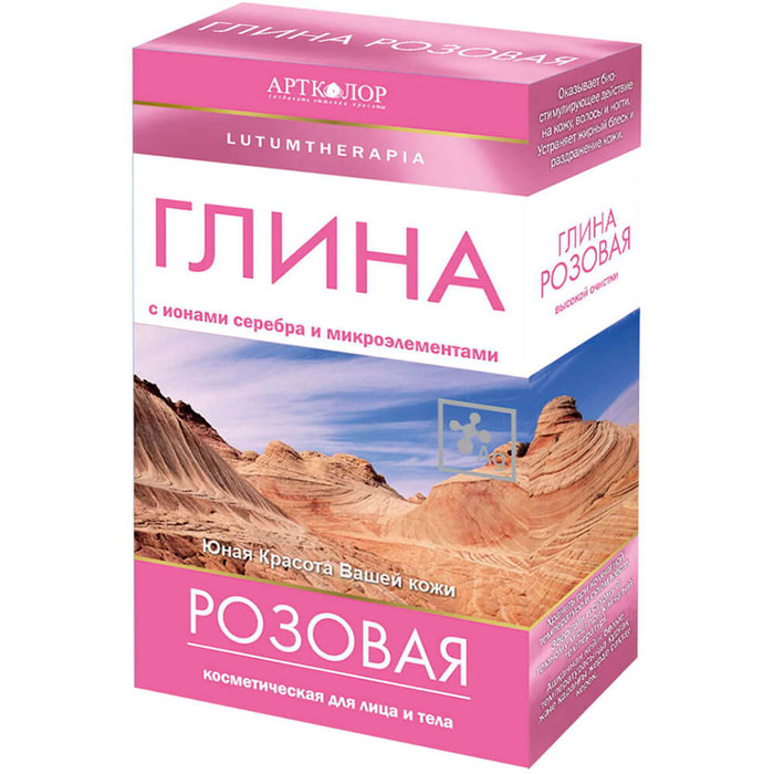Розовая глина - натуральный природный продукт, богатый железом и калием. Улучшает кровоснабжение и питание кожи кислородом. Особенно благоприятно Розовая глина воздействует на вялую и тусклую кожу, придает ей жизненную энергию, ощущение свежести, выводит токсины. Уменьшает чрезмерное ослабляющее волосы потоотделение кожи головы. Розовая глина стимулирует процесс обновления клеток, способствуя тем самым долгому сохранению Вашей молодости, совершенствованию красоты, укреплению здоровья лица и тела. Косметические маски из розовой глины омолаживают и смягчают кожу, устраняя высохший и отживший эпидермис. Удаляют грязь и излишки жира, закупоривающие поры, способствуют регенерации и заживлению трещин кожи. Особенно полезны маски из розовой глины для сухих и безжизненных волос. Розовая глина снимает раздражение с кожного покрова и удаляет перхоть. Теплые компрессы из розовой глины стимулируют обменные и репаративные процессы в тканях. Местные ванночки из розовой глины уменьшают роговые наслоения и смягчают огрубевшую кожу на руках, локтях и ногах, способствуют заживлению мелких трещин и порезов. Ванны с розовой глиной хорошо снимают усталость, обладают тонизирующим действием, улучшают обменные процессы в тканях, смягчают кожу тела. Детальному изучению использования глины посвящены книги Валентины Травинка «Голубая целительная глина», «Тропинка к здоровью», Разыщи в себе радость».