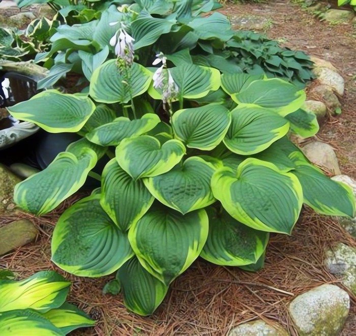 Крупная размера хоста высотой 60 см и шириной до 120 см.