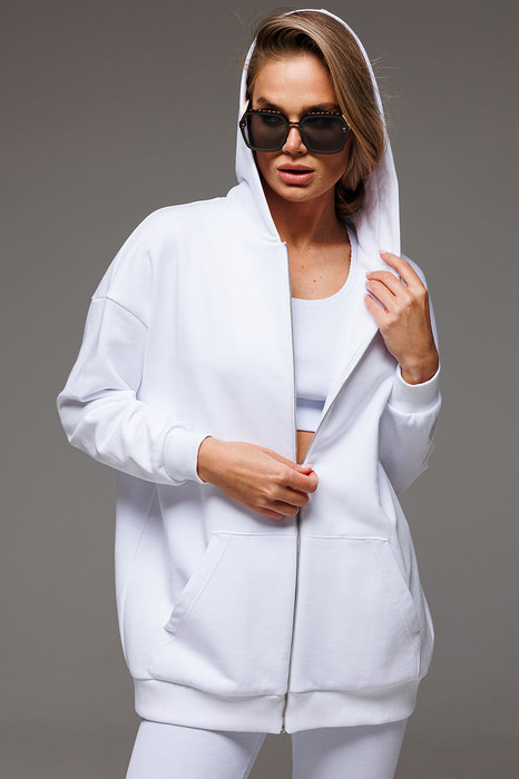 Удлиненное женское оверсайз худи с металлической застежкой-молнией составит отличную комбинацию для любого образа.