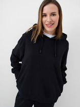 Джемпер прямого силуэта из комфортного трикотажного полотна. Горловина обработана капюшоном. Рукав со спущенной линией плеча, по низу на резинке. По низу джемпера притачной пояс. По переду декоративная нашивка и шнур. Обращаем ваше внимание, что фурнитура может отличаться от фото.