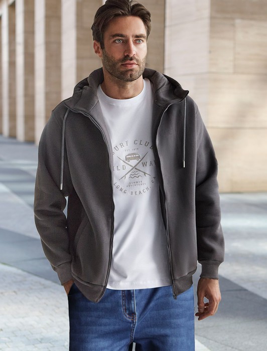Состав: 80%Хлопок 20%ПЭ Плотность: 320 Г/м2Худи на молнии выполнено из премиального эластичного футера трехнитки с теплым начесом. Модель с капюшоном и воротом стойка дополнена боковыми карманами и нашивкой с логотипом бренда из эко-кожи. Ранней осенью или поздней весной можно носить в качестве верхней одежды. Высококачественная фурнитура цвета темное серебро. Изделие сочетается в костюме с брюками U44.006