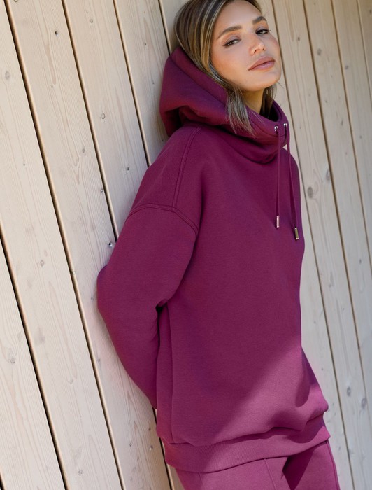 Состав: 80%Хлопок 20%ПЭ Размер товара на первом фото: 42Уютное худи пурпурного цвета с цельнокроенным капюшоном и спущенной линией плеча создано для комфорта в холодную погоду. Модель выполнена из премиального футера трехнитки с мягким начесом, что обеспечивает дополнительное тепло и приятные ощущения при носке. Глубокий капюшон дополнен шнуром для регулировки объема, что обеспечивает отличную защиту от ветра и холода, а серебристая фурнитура добавляет стильный акцент к современному худи. Эластичные манжеты на рукавах и по низу обеспечивают дополнительную защиту от продувания, способствуя сохранению тепла внутри. Натуральный хлопок гарантирует дышащий эффект, позволяя сохранять оптимальный микроклимат тела даже при длительном ношении. Благодаря эластану в составе повседневное худи подходит для активного отдыха, вы будете чувствовать себя свободно в любой ситуации.