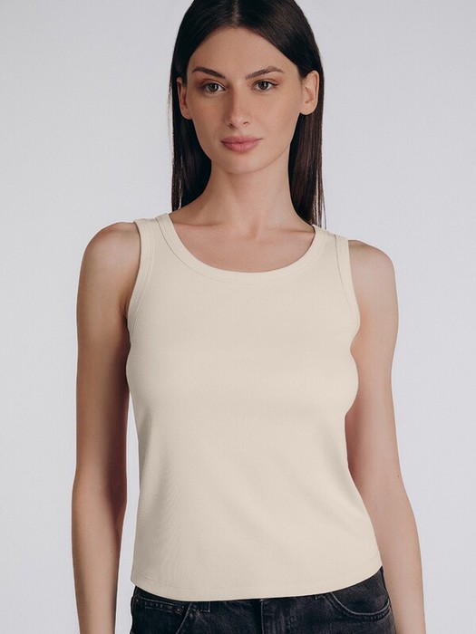 Белая майка классического кроя из хлопково-вискозного полотна с тонкой рубчатой текстурой.