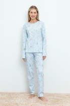 Пижама женская 3279TCC бренда Indefini, изготовленная из мягкого хлопка, включает кофту с длинными рукавами, с круглым вырезом и с резинкой снизу и на манжетах.