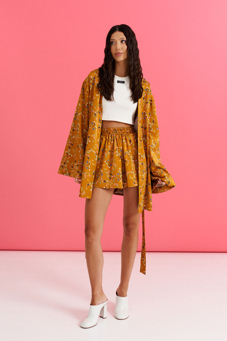 Кардиган прямого с свободного кроя выполнен из полотна с цветочным принтом. Характеристики: прямой крой , подкладка, плавный срез горловины, рукав слегка спущен, по лини талии нашиты шлевки, в комплекте пояс из ткани основного изделия, в боковых швах разрезы. Длина по спинке 80, длина рукава 6 79 от края горловины.