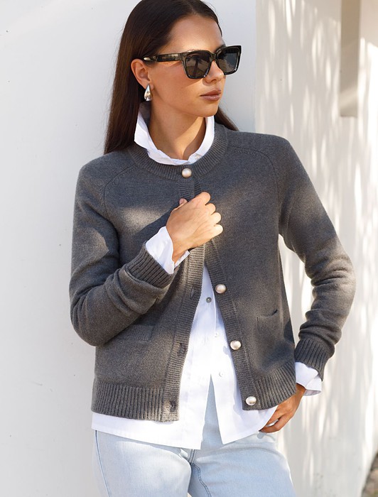 Состав: 52%ПАН (акрил) 33%ПЭ 8%ПУ 7%Кашемир Размер товара на первом фото: 42Кардиган выполнен из мягкой меланжевой пряжи с добавлением кашемира. Модель прямого силуэта гармонично впишется в любой образ с брюками, юбками и джинсами. Застежка на пуговицы в жемчужно-золотистом оттенке. Изделие очень приятное к телу, совершенно не колется и отлично сохраняет тепло. Сочетается в костюме с брюками D38.013, D38.012 и юбкой D36.016