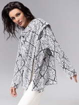 Кардиган свободного силуэта из трикотажного полотна.  Рукав со спущенной линией плеча удлиненный и расширенный книзу. В комплект входит пояс.