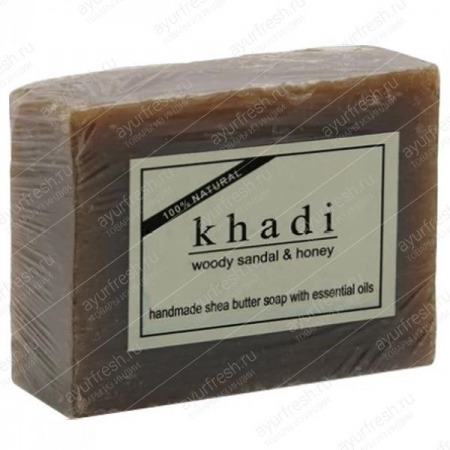 Натуральное мыло ручной работы "Древесный Сандал и Мед" Кхади (Woody Sandal & Honey Soap) с добавлением масла Ши и маслом какао. Это мыло изумительно чувствует себя на вашей коже. Масло сандалового дерева, оказывают успокаивающее действие на тело и ум, охлаждает и расслабляет вашу кожу. Мед это природное моющее средство и уникальный смягчяющий компонент. Сандал используется в косметологии благодаря антисептическим и очищающим свойствам Обладает бактерицидным и противогрибковым действием, очищает кожу от микробов, применяется при различных дерматитах. Лечит чесотку, гнойные инфекции, абсцессы, зуд, акне, угри, нарывы, фурункулез, сухую экзему, аллергии, повреждения кожного покрова, прыщи, залечивает раны.