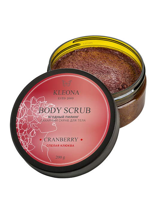 Состав: сахар, морская соль, вода, масло оливковое, масло кокосовое, масло карите, клюква (ягода), малина (ягода) брусника (ягода), глицерин растительного происхождения, кожица винограда (экстракт), масло миндальных косточек, масло касторовое, триглицериды каприловой/каприновой кислот, алкилглюкозиды натрия, сквалан, глицерилолеат, бензиловый спирт, сорбитанкаприлат, лимонная кислота, пищевой ароматизатор "Клюква" (идентичный натуральному), экстракт ванили, комплекс полиненасыщенных жирных кислот (витамин F), токоферола ацетат (витамин Е).