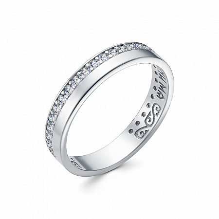Кольцо (Господи Спаси и Сохрани мя) с фианитом родированное серебро 925*