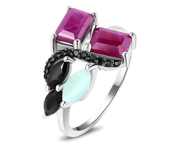 Кольцо, арт.658417 Серебро Серебро 925, р. 17.5, 3,73 гр., изумруд берилл , рубин корунд , сапфир корунд , шпинель