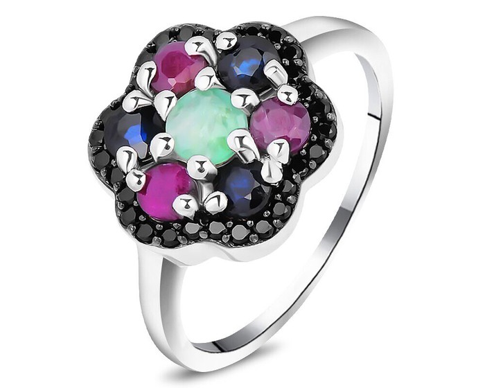 Кольцо, арт.658366 Серебро Серебро 925, р. 17, 2,77 гр., изумруд берилл , рубин корунд , сапфир корунд , шпинель