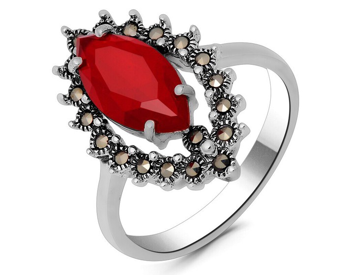 Кольцо, марказит , синт.рубин, SL-AGA1737