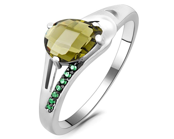 Кольцо, оливковая шпинель , наноизумруд, Лилия