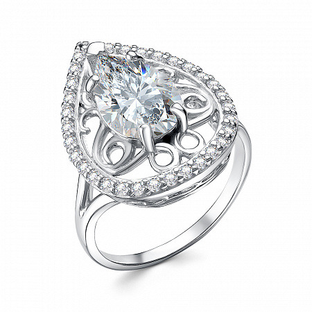 Кольцо с фианитом родированное серебро 925*