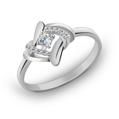Кольцо с фианитом родированное серебро 925*