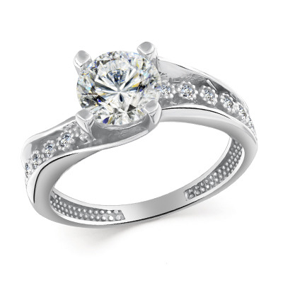 Кольцо с фианитом родированное серебро 925*