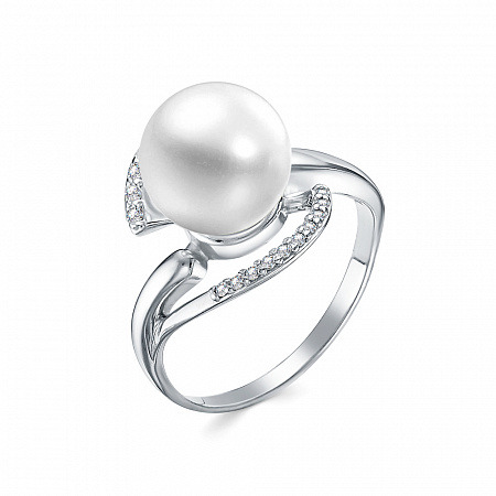 Кольцо с иск.жемчугом родированное серебро 925*