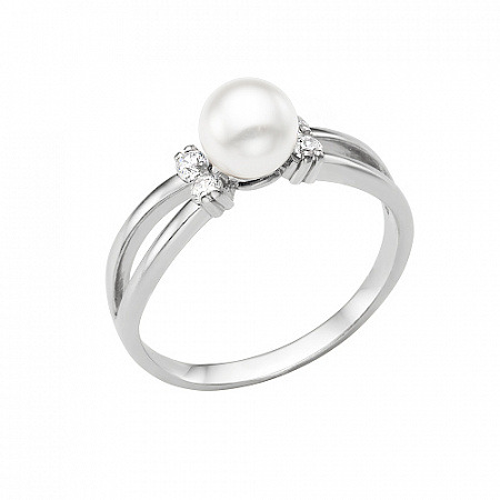 Кольцо с иск.жемчугом родированное серебро 925*