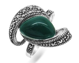 Кольцо, зеленый агат , марказит, SL-AGA82
