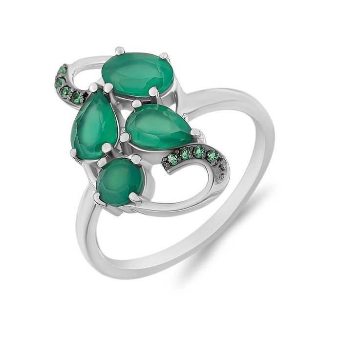 Кольцо, арт.654100 Серебро Серебро 925, р. 17, 2,53 гр., зеленый агат , наноизумруд