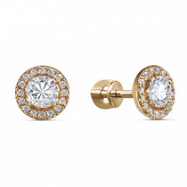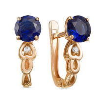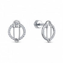 Серьги-пусеты из серебра с пл.кварцем цв.розовый лунный и фианитами родированные