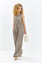 Комбинезон отрезной по линии талии, полуприлегающего силуэта.