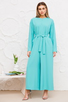 Комбинезон с центральной двубортной застежкой на петли и пуговицы, отложным воротником и лацканами. По переду- рельефы, выходящие из проймы. Спинка с талиевыми вытачками. Рукав втачной, короткий. Нижняя часть комбинезона с карманами, вход в карман наклонный к боковому шву. Комбинезон со съемным поясом.