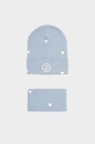 шапка+снуд; хлопок 2-слойный,швы на шапочке внутренние; состав: 95%хлопок, 5%эластан; размер единый 48-52; Посмотреть полноразмерное фото