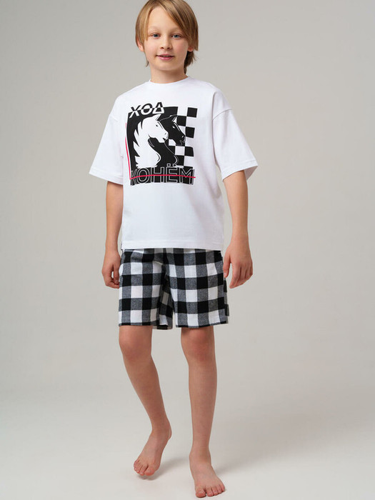 Стильная подростковая пижама для мальчика от PlayToday — лёгкий комплект из хлопковой футболки и удобных текстильных шорт в клетку. Отличный выбор для сна, отдыха дома и летних пижамных вечеринок.