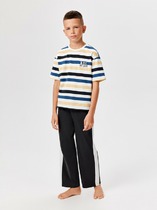 Комплект из трикотажной футболки в полоску и сарафана из легкого денима. Футболка прямого кроя с круглым вырезом горловины. Сарафан трапециевидного кроя на тонких лямках, декорированный небольшой яркой нашивкой.На ребенке представлен размер 140:Футболка:- Ширина изделия по линии груди 35 см- Ширина по низу изделия 37,5 см- Длина изделия 48 смСарафан:- Ширина изделия по линии груди 37,5 см- Ширина по низу изделия 52,5 см- Длина изделия 60 смРазница между размерами составляет 1,5 см.