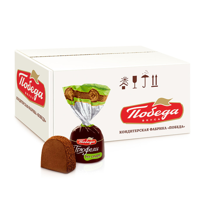 Королевский десерт нового поколения. Не стоит отказываться от любимых конфет, тем более если они не содержат сахар. В основе трюфелей «Победа» без сахара – нежное «сердце» из шоколада и сливок с добавлением ароматного коньяка. Посыпаны они ароматным темным какао, а сахар заменили на стевиолгглиозид – натуральный экстракт стевии. Трюфели менее калорийны, при этом они сохранили вкусовые качества любимых конфет. В трюфеле без сахара от «Победы» содержится инулин – природный пребиотик, который регулирует работу желудочно-кишечного тракта и укрепляет иммунитет. Магия вкуса настоящего шоколада, удовольствие и польза в каждом трюфеле без сахара.