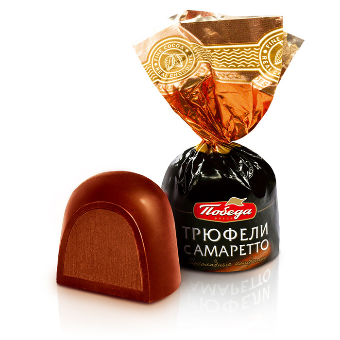 Трюфели от «Победы» – это трюфельное «сердце» из сливок и шоколада в окружении нежной шоколадной оболочки. В этот рецепт добавлен ликер амаретто, его сладкий вкус с благородной горчинкой и миндальным ароматом идеально дополняет шоколад.