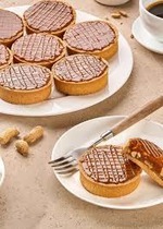 Цельный миндаль, укутанный нежным трюфельным кремом, в коконе из воздушной вафли, покрытой темной шоколадной глазурью с рельефным узором из шоколадного крема.