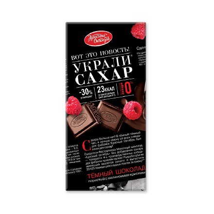 Великолепный темный пористый шоколад «Красный Октябрь» без сахара с криспами малины. В составе только натуральные ингредиенты, создан для ценителей темного шоколада. Без вреда для фигуры: меньше углеводов на 30%, а в одной дольке шоколада всего 23 ккал, без интенсивных подсластителей, без вреда для ЖКТ. Отличное начало дня с чашечкой кофе!