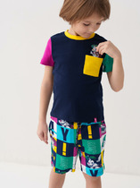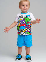 Костюм для мальчика, состоящий из футболки и удлинённых шорт, не стесняющих движения. На футболке современный принт. Костюм предназначен для повседневного использования.