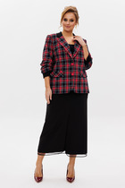 Костюм женский из кулирного полотна состоит из кофты и брюк. Кофта прямого силуэта, горловина круглая, рукав длинный, втачной, внизу на манжете, низ изделия на поясе в цвет отделки, на полочке принт. Брюки прямые, верх на поясе с резинкой, в боковых швах внутренние карманы, низ с манжетой в цвет отделки, на передней половине брюк принт.