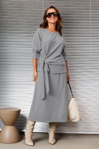 Костюм женский из кулирного полотна состоит из футболки и брюк. Футболка прямая, горловина круглая, рукав короткий, втачной, на полочке принт, низ изделия обработан на плоскошовной машине. Брюки прямые, верх на поясе с резинкой, в боковых швах вставки из отделочной ткани с печатью, низ изделия на резинке.
