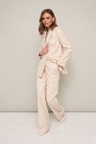 Костюм женский кофта и брюки. Кофта прямого силуэта со спущенной линией плеча. Рукав длинной 3/4 с притачной манжетой. Горловина изделия округлой формы. Низ изделия ассиметричный. Горловина и низ изделия обработаны при помощи окантовки. На полочке изделия принт. Брюки прямого силуэта. Притачной пояс с двумя заложенными складками. Карманы формы "хулиган". Низ изделия подгибка.