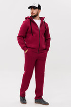 Костюм мужской выполнен из утепленного футера 3-х нитки с начесом. Кофта на молнии с капюшоном и карманами на молнии. Слева на груди небольшой печатный принт. Брюки с карманами на манжетах. Слева под карманом небольшой печатный принт.